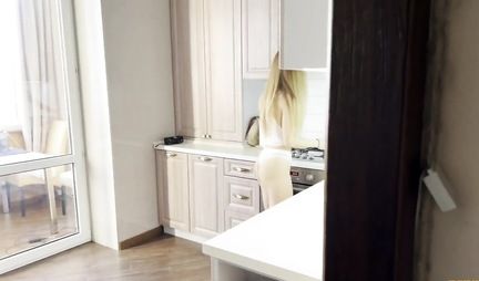 A muscled guy fucks a Russian chick in the kitchen instead of breakfast