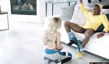 A sexy blonde girl actively fucks with a tattooed black man and screams at his hefty phallus. The girl's body is filled with sexual energy, so it becomes easier for her to serve her partner's fat colossus and get an unreal buzz. And soon the athlete will fill her soft vagina with thick sperm.