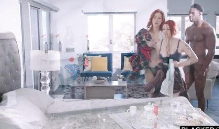 The Negro gives two red-haired partners a giant dick and feeds them with warm sticky jizz