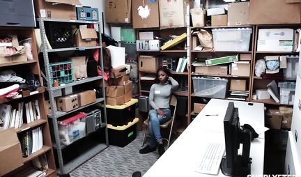 The store guard dragged a young mulatto woman into his office, whom he suspected of stealing. The young girl denied herself to the last, but the peasant still had to watch her through. To do this, he asked her to undress. The beauty immediately realized that she could not avoid punishment, so she decided on a tricky move. The mulatto began to caress the man's penis and set up her pussy for penetration so that the guard would become a little kinder. With a white member, he penetrated her chocolate hole and pleased himself and her.