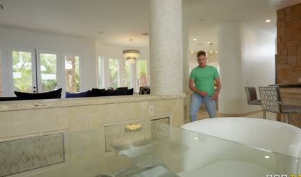 A pretty red-haired wife knows how to clean up, but her husbands young friend, excited by the sight of a naked neighbor, cannot restrain himself and cums on a transparent table. The lady is trying to put things in order, but soon the lad bangs her on this very table. Here hubby Mick appears and his beloved invites him to play a sexual game with his eyes closed. As a result, she bangs both men, ending in full.