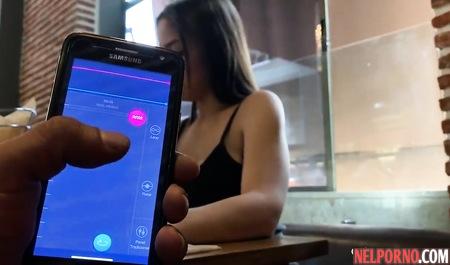The guy before going to the cafe girl put the vibrating egg in the vagina. As soon as the girl began to eat, he began to control the toy and do everything to ensure that his girlfriend was Horny and was ready to get her orgasm right in the cafe. The girl right after created for fun in front of the camera.