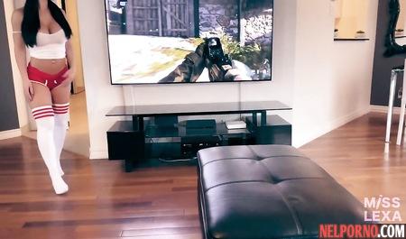 This brunette is not a problem to seduce his friend, even when he's playing a computer game. This time the dark-haired girl did a Blowjob, but and spread her legs in order to get enough of his thrusts while shooting homemade porn in the first person right in front of a large TV.