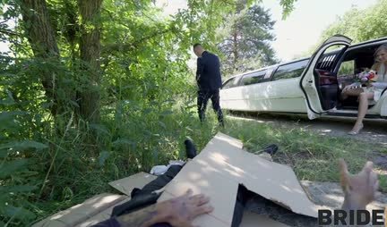 Well, the idea is that young people stopped to urinate on the way before the wedding - a completely normal occurrence. And if at the same time they also planned to have sex, that’s absolutely great. Well, while the young spouses were caressing each other, some homeless man managed to sneak into the wedding escort and almost gave his wife to a tramp for sex. However, he did not hesitate and cummed copiously in the car in all the places he could reach!