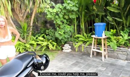 Riding around on a bike, a chick catches a self-tapping screw on the wheel and asks for help from the first guy he comes across. He advises her not to do anything, and the girl offers to have sex. The blonde has a husband at home, so the couple goes to visit the dude, and already here they are having sex with might and main without any moral restrictions and obstacles. It remains only to determine whether this is happening in real life or a friend is having a wonderful dream ?!