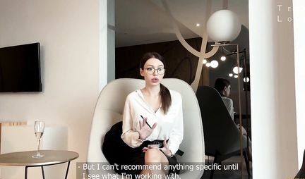 A pretty Russian girl, although she starred in candid films, at the same time has a diploma in psychology and even practices. And today a dude comes to her hotel room, who really needs psychological help. The patient has a powerful erection, and only this girl with a tattooed squid on her ass can achieve a drop in erection without medication... you just need to fuck more!