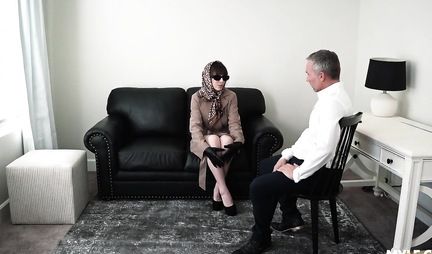 The psychologist consoled the brunette with hot sex after the death of her husband