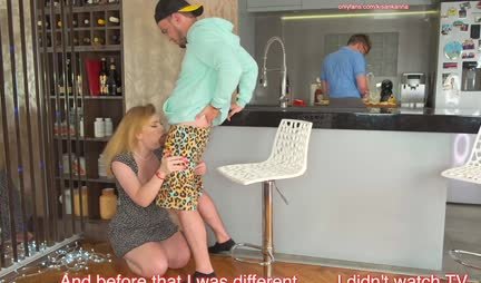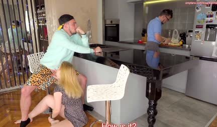 While the owner of the house, Lesha, is preparing sandwiches for his friend and wife, the latter is trying with all her might to fuck the former at 00:42. Well, while the hubby is retelling stories from Rent-TV, the pretty wife is pleasing a mutual friend in different poses. He especially likes how the girl sucks his dick at 01:49 and how she gives herself in the doggy style position at 03:27. Probably, the horned hubby would have hit them against the ceiling, but at 08:14 a couple of lovers completely confused the shores and then Lesha realized who was a goat in life and who was a goat whore!