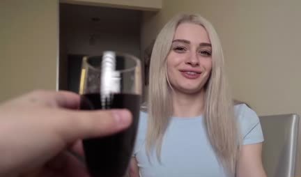 Russian blonde drank a little and offered anal for cock