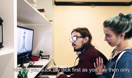The Russian girl was worried that her friend was spending too much time at the computer monitor. This nerd in glasses was constantly working, but you also need to relax. The lustful girl decided to give him some pleasure, so while he was sitting at the computer, she got into his pants and took a cock in her mouth. From such pleasure as a hot blowjob, the guy with glasses did not refuse. After sucking, the nerd famously fucked his girlfriend in a juicy pussy and gave her an orgasm.