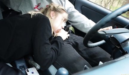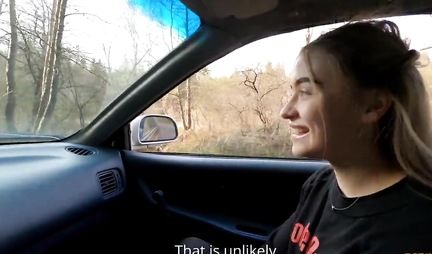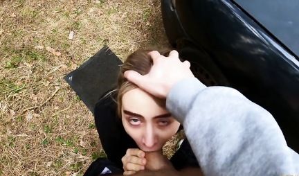 A Russian girl with big eyes and her friend decided to go by car right in nature. For a start, the beauty opened her mouth and polished the driver's penis with her lips, after which she spread her legs for a spanking in a pose of cancer. Her juicy pussy is open for love, and her mouth is for her partner's sperm with poured eggs.