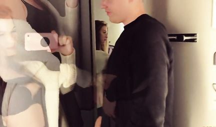 A Russian girl, a seductive and gentle person is ready to suck a dick even in a store. She allows her lover to film her gorgeous body on camera, and in the dressing booth, she completely went down on her knees, opening her mouth for a blowjob. Public sex is normal for this couple. They love experiments that, in the first place, give them a lot of positiveness and excitement. A cutie with long hair polished the cock with her lips and took a lot of sperm into her mouth, licking the drops from the head of the rod.