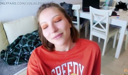 A young Russian girl, after giving a guy a blowjob, is ready to substitute tight slits for love and tenderness. For a start, she played with a member of a lecher, after which she bent down into a pose with cancer and enjoyed the jolts of the unit. The lover fucked the beauty and did not forget to fill the shaved slits with sperm.