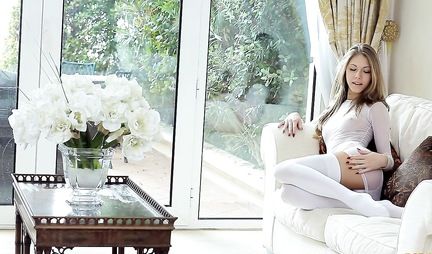 Russian girl in white panties inserts holes for vaginal sex