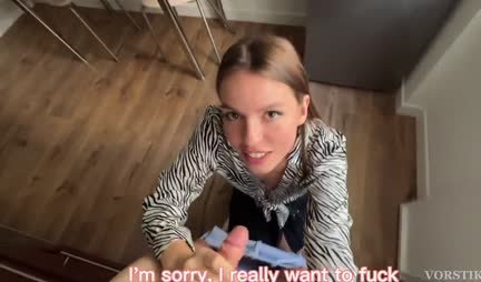 When a pretty girl at 00:15 stopped the courier with the order and asked not to deliver it to her neighbor, he at first went nuts. But at 00:46, she dragged the guy to her apartment and said that she wanted to take revenge on the guy who left her. When the boy refuses to help, the girl offers to pay with sex and at 01:36 she descends to take the strangers rather big penis into her mouth. Seriously aroused, Vorstickk at 05:06 slobbers the head of the penis and descends on top of him. At 07:26, doggy-style sex follows, and at 10:08 again a blowjob, ending at 12:13 with a cumshot on the tongue. So if you suddenly did not bring the order, think about the reason!