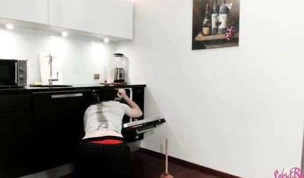 A pretty Russian girl rented a room in the same apartment with some guy. Being neighbors, they practically did not communicate, and rarely met in the morning in the kitchen. Today, the girl started to cook a delicious dinner and walked around in the kitchen in such a seductive dressing gown that the neighbor could not pass by, especially since her naked, appetizing ass was visible. As soon as the guy began to caress her elastic rolls, the girl with glasses gave him a deep blowjob, and then they had hot sex in the kitchen.