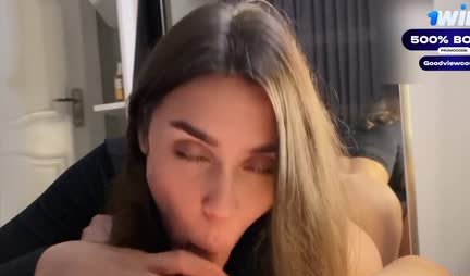 This cute Good View Drop is a real cheerleader with a beautiful face. Well, it’s not surprising that she is very much in demand among men and therefore today at 00:14 she willingly gives a blowjob to another friend with whom she is truly in love. Plus, she also jerks off a nice boner. But the chronic sucking ends at 11:26, because the dude cums in the girl’s mouth.