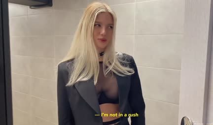 Beautiful blonde Stacy Angel went to answer a call, but at 01:09 she made the wrong door and ended up visiting a simple guy, whose girlfriend had gone to the country today. A lovely blonde undresses at 01:35, showing off her beautiful breasts. At 02:40 the girl sucks the owner’s dick, and at 09:25 he fries the guest in the doggy style position right through the holes of her fishnet tights. At 13:03 she rides her pussy astride the boy’s dick, and at 15:15 she cums on her face. Its a good thing she was so wrong.