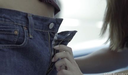 Russian model in stockings gives a blowjob to a very cocky designer in the apartment