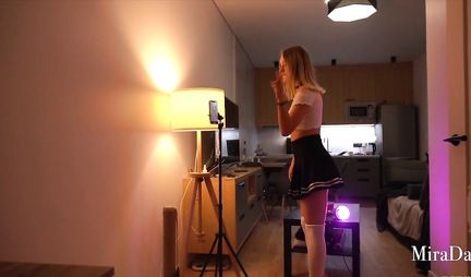 A Russian student in a miniskirt and stockings, a seductive slut who is in no way against sex with a friend in the first person. She first twirled in front of him, then knelt down and opened her mouth. She is more than pleased to feel the dick in her mouth, after that she lay down on the sofa and lifted her legs in white stockings. Yes, she is just happy to be able to get real penetration into her slit, which is about to be wet and ready to cum from vaginal.