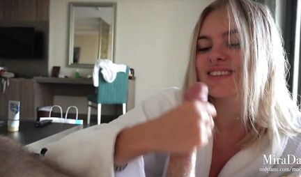 Fuck, beat, - the Russian blonde once again declares when her husband urges her to indulge with his penis, since it is like a housing problem in Russia. Well, the girl would be glad to refuse, but it is not so easy to do this. Therefore, she lubricates her friends penis with lubricant and jerks off as she wants. Through this, a friend has a strong desire and he fries his wife in doggy style and even finishes, which is not surprising in view of the beauty of his girlfriend.