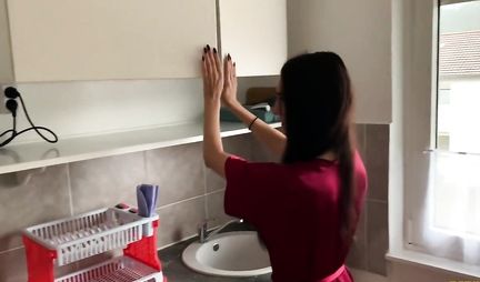 As you know, most of all you want to eat closer to the night. So a pretty Russian brunette wants to sharpen something, but discovers that she’s out of salt. The minx has to go to the neighbor and ask him for such a shnyag. But her comrade does not have it either, and in return he offers a penis for a suction, and then just poke around ... This is how it happens - I came for salt, but got hell with sex.
