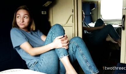 In order to somehow relax during the trip in the compartment, the guy and the girl began to be naughty with each other. For a start, the chick showed elastic beautiful boobs, then she got down on her knees in front of her lover and opened her mouth and began to do a blowjob. She's just happy to be able to lip-fuck him and take cum.