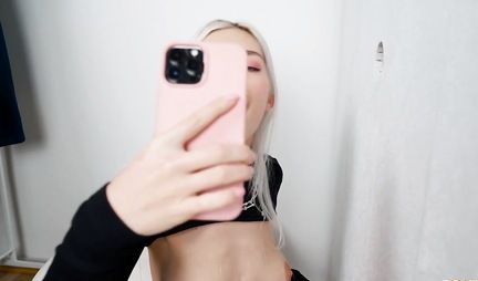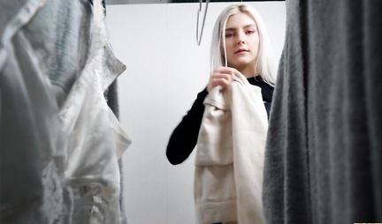 Russian bitch with nice tits fucks in the fitting room