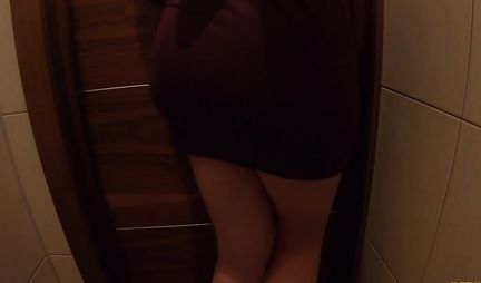 Russian bitch went to the toilet to ride the guys boner
