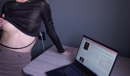 This student’s stepbrother cannot calm down when Alice, for the third semester, cannot submit an essay on the topics of M.Yu. Lermontov. Well, instead of writing, she seduces her brother into sex with all her might during a private conversation at 01:57. And even if not immediately, but at 04:16 he begins to lick the careless girl’s pussy, and at 05:35 she begins to suck his penis. As a result, violent sex and a full load of sperm, which her stepfather still releases!