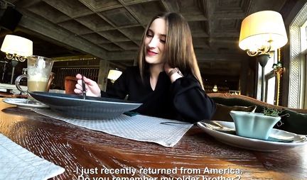 In the restaurant, the guy saw a pretty girl and decided to drive up to her, as she was bored alone at the table. The guy treated the calf to a delicious dinner and received gratitude almost immediately. In the toilet, the girl gave the guy an excellent blowjob, but it didn’t end there. A young Russian girl gladly agreed to go to the guy to continue communication there. On a cozy bed, they tumbled in different positions and the chick turned out to be a hot little thing who knows a lot about sex.