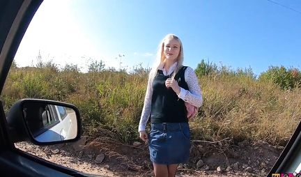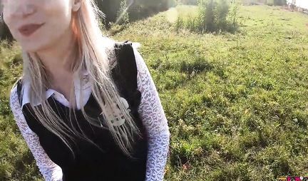 Russian chick seduced by a pickup truck and sucked in nature