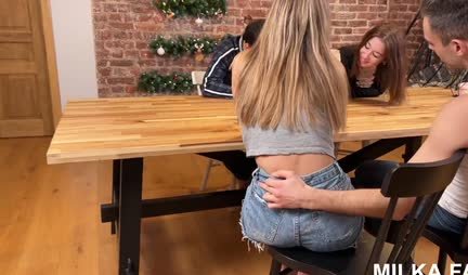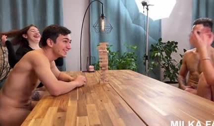 Even Nekrasov, in his poems about Russian women, claimed that they could easily stop a galloping horse and enter a burning hut. But in fact, he was not familiar with a couple of these girls, because otherwise he would have composed completely different poems about the sexual virtues and skills of these girls. Well, in fact, two young Russian couples play spillikins on the weekend and feel that it would be nice to have a two-on-two group sex. And this is never the wheel formula of the old Niva, but a truly Russian orgy, during which the guys fuck their girlfriends for two, and they answer them with the same temperament.