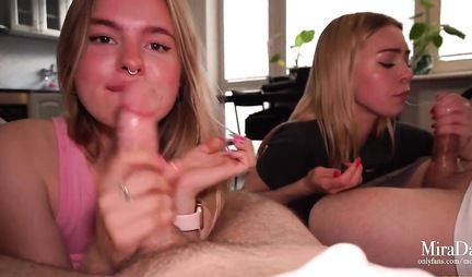 Two pretty Russian girls who live in a hostel are always happy to have guests and even if someone considers them to be shmars. But their joy is fully manifested when two friends from senior streams (courses) come to visit. They never need to be taught what to do in order to please the girls, but these fools did not bring beer with them and did not bring dumplings to fry with cold vodka. But for starters, the girls themselves must do well and beautifully, and later group sex follows and a lot of pleasant impressions from sex according to the 2x2 scheme.