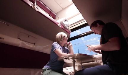A man with a camera in his hands decided to shoot his flirting with a blonde in glasses. The girl right in the train compartment does not refuse the opportunity to have sex. She had already pulled down her pants, lifted her legs and held out her juicy crotch for love. She is ready to cum more than once, letting the cock in to the balls.