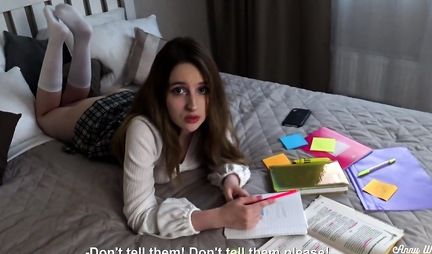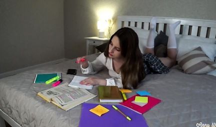 The young Russian cutie was busy with her studies because she had exams soon. But the guy, looking at the elastic ass of a student in a short skirt, could not take his eyes off her. Of course, this lustful dude decided to offer his Russian girlfriend a little distraction and relax together. It didn't take long to persuade the heifer. For now, the cutie is actively sucking the guy's cock, setting him up for a wave of sex. As soon as she saddled his trunk with a wet cap, she completely forgot about her studies and just got high.