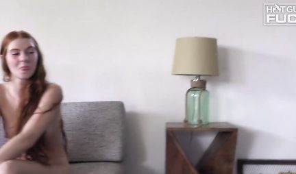 The red-haired girl came to the casting for a reason, but in order to show the ability to fuck. To begin with, the young woman opened her mouth, did a suction and only after that she spread her legs for love. Her tight pussy was covered with moisture, after which the slut moans and cums from a passionate vaginal on a white sofa.