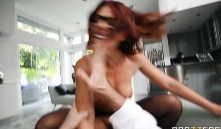 Redhead girl in stockings experienced a powerful orgasm from deep anal