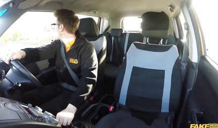 Redhead beauty with glasses enjoys sex with a driving instructor
