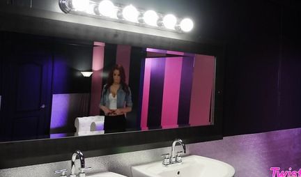 Redhead lesbian licked beauty pussy hard in womens toilet