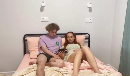 Late Saturday evening and a Russian couple in the person of a guy and his half-sister do not know how to have fun, and therefore they play a free version of the game of forfeits. Suddenly, the option of depriving her brother of virginity comes to the head of the red-haired sister. Without much hesitation, the girl gives the dude a blowjob and spreads her legs for the direct implementation of a sexual project.