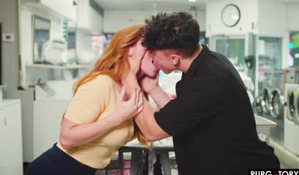 The red-haired woman really loves going to the nearest laundry with dirty laundry. All because that is where she finds her young lovers. And today one of the auxiliary workers is attracted to her, who as a result receives oral sex from the lady, hard fucking, and she gets cum in her mouth and a couple of orgasms in her head!