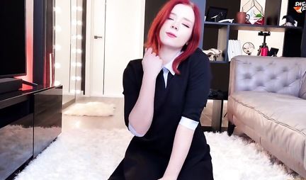 The red-haired girl in white pantyhose and a modest black dress, only in appearance seemed so impregnable. In fact, the girl specially dressed up in such a way to stir up the fantasy of her boyfriend. With her legs, she masturbated the guy's strong trunk, and then she pampered the penis with hot oral sex. Having torn the pantyhose on the cutie, the guy plunged his excited shaft into her delicious pussy. While he was fucking a red-haired girlfriend in various poses, she moaned from the buzz and finished.