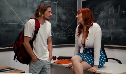 The American educational program is well spoken about by its deeds. So every year the number of students is getting smaller and smaller. That is why it was recommended that teachers make every effort to popularize educational disciplines. Well, this red-haired woman goes further than other colleagues. Having chosen the student she liked, she, after the lectures, leaves him in the audience and teaches the dude about sex, which he is immensely happy about.