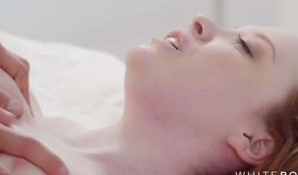 The guy pampered the red-haired chick with a gentle kuni in bed