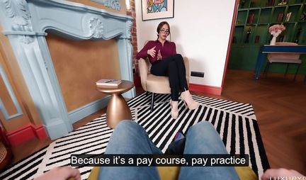 The young student agreed to the offer of his teacher, who was ready to help him prepare for the exams. The Russian woman now came to his house every day, like a tutor. Today, the student's parents were not at home, so the teacher behaved more liberated. Pretty woman with glasses offered the guy a little distraction from his studies and make a sex break. The teacher with glasses sucked the guy's trunk, feeling how he tenses up from oral sex, and let his boner into the wet cap.
