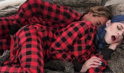 The sleeping couple in the bedroom took pajamas for homemade porn on the bed