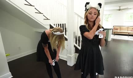 Two girlfriends often retire after college in the house of one of them and gradually engage in lesbian sex. Even today, the girls act according to the old scheme, but it turns out that their stepfather is sleeping at home, who catches the harlots for their sweet pastime and, as a punishment, makes the girls clean the house, and then continue the pranks, but in his presence ... As a result, they did not enjoy only same-sex love with each other, but also completely heterosexual, given the male member of the stepfather of one of the mistresses!