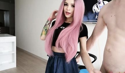 The tattooed girl bent over in her chair in order to show her man how special and hot a slut she is. After the cutie spread her legs, she was ready for a real and hot fuck on camera. The guy's hard penis confidently and greedily penetrates inside, hammering the slut until she moaned with delight. A strong dick does everything possible so that the cutie not only finishes, but also takes the maximum amount of sperm from her fucker.