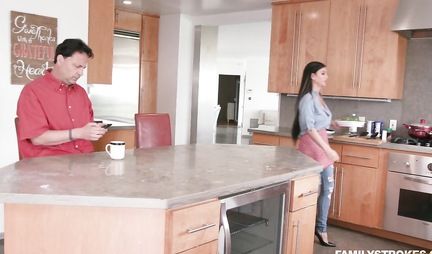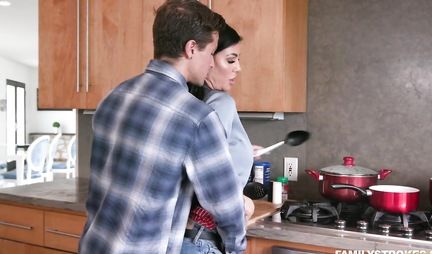 The stepson was crazy about his new stepmother. He not only pawed her in the kitchen, but also fingered her clitoris with his fingers. The woman is so turned on that she can no longer stop. She is ready to rip off her jeans and substitute her crotch for a whipping with a young libertine who loves sex with experienced partners.
